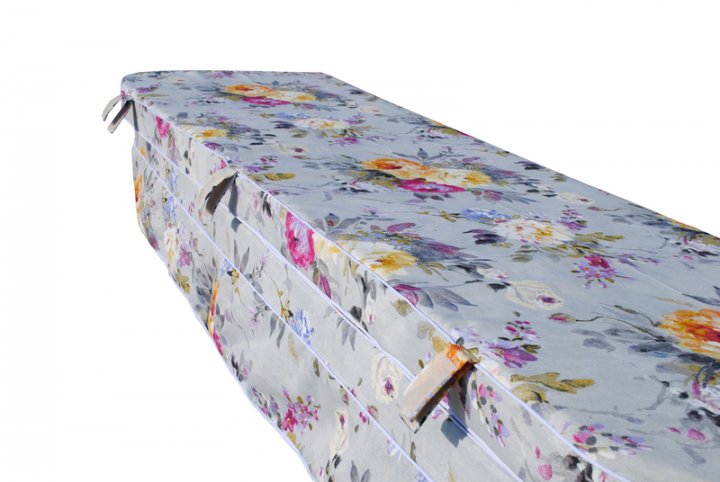 Данный матрас предназначен для садовой качели. Такие матрасы изготавливаются из универсальных тканей, изготовленных в Испании. Благодаря тому, что в такой ткани огромный процент натуральных волокон, она замечательно пропускает воздух, а также является максимально приятной на ощупь. Эта ткань устойчива к появлению пятен, она с лёгкостью разглаживается. Наполнитель изготовлен из пенополиуретана вторичного вспенивания. Спинка, а также сиденье матраса выполнены на молнии, поэтому наполнитель с лёгкостью можно вынуть, а чехол легко можно постирать. Для того, чтобы матрас надёжно держался на качели, на нём есть специальные завязки по бокам.